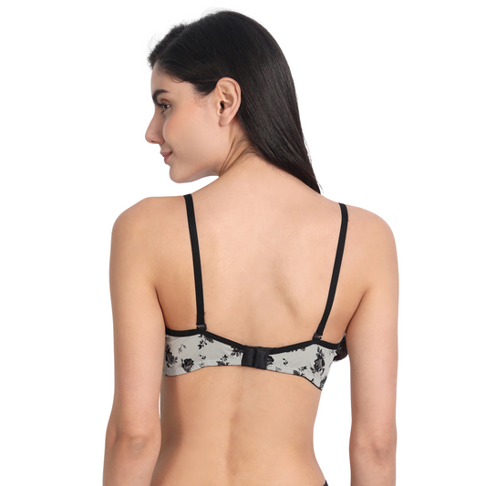 Women's Lycra Padded Non-Wired Transparent Removable Straps Printed Pushup Bra