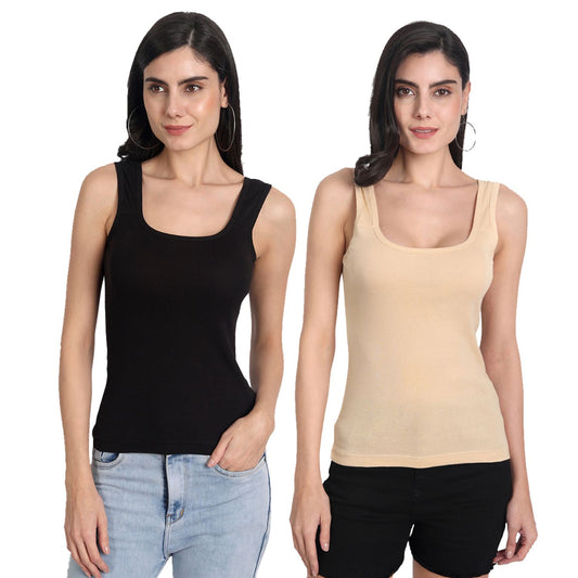 Women's Regular Fit Wide Strap Cotton Camisole Slip Spaghetti Multicolor Combo pack of 2